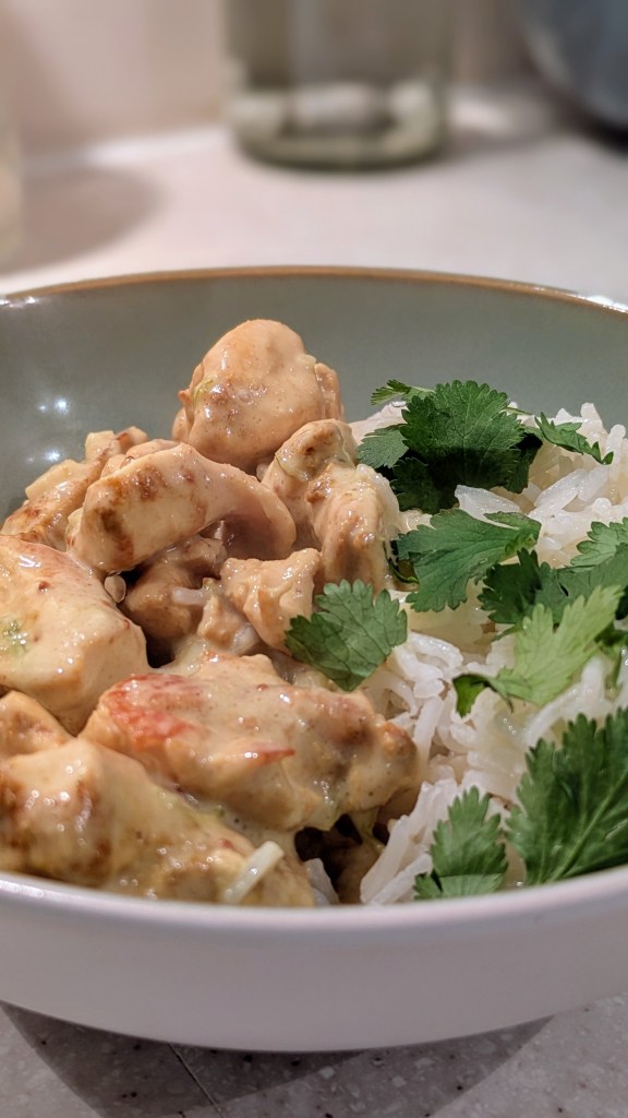La semaine se termine sous le digne des saveurs épicées avec ce curry rouge, à défaut de curry rouge, utilisez de la pâte de curry vert, moins pimentée. Vous pouvez également enrober les morceaux de dinde de 2 cuillerées à soupe de curry en poudre, avant de les faire dorer.