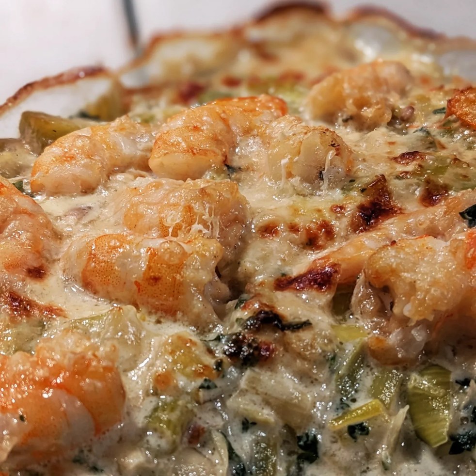 Pour commencer la semaine une recette qui va réchauffer nos soirées d'hiver...Tellement facile qu'il est inutile d'en rajouter :-)...Bonne semaine gourmande !!! Ingrédients pour 4 personnes : 24 crevettes - 4 blancs de poireaux - 1 petit bouquet d'aneth - 50 cl de crème liquide entière - 30 g de parmesan - 20 g de… Lire la suite Gratin aux poireaux et crevettes