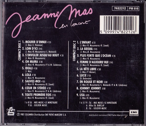 En septembre 1987 sort le premier et unique live de Jeanne Mas.