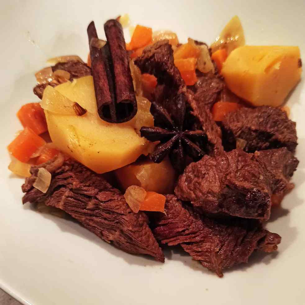 Puisque l'ambiance générale est morose, il fallait un plat épicée pour commencer la semaine. Au programme coriandre, cardamome, badiane, gingembre, cannelle, un cocktail étonnant mais qui après 2h30 de cuisson donne un bouillon délicieux. Comme tous les plats mijotés plus cela cuit meilleur c'est , donc vous pouvez l'oublier sur le feu plus longtemps sans… Lire la suite Boeuf mijoté aux épices