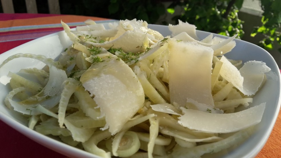 Retour sur le blog de mon petit péché mignon..le fenouil bien évidemment ! pendant l’été j’aime le consommer cru avec une vinaigrette de caractère et le parmesan l’accompagne parfaitement. Surtout pour le parmesan ne l’achetez pas déjà en copeaux (d’abord car il est plus cher et surtout il a moins de gout). Une recette toute… Lire la suite Salade de fenouil au parmesan