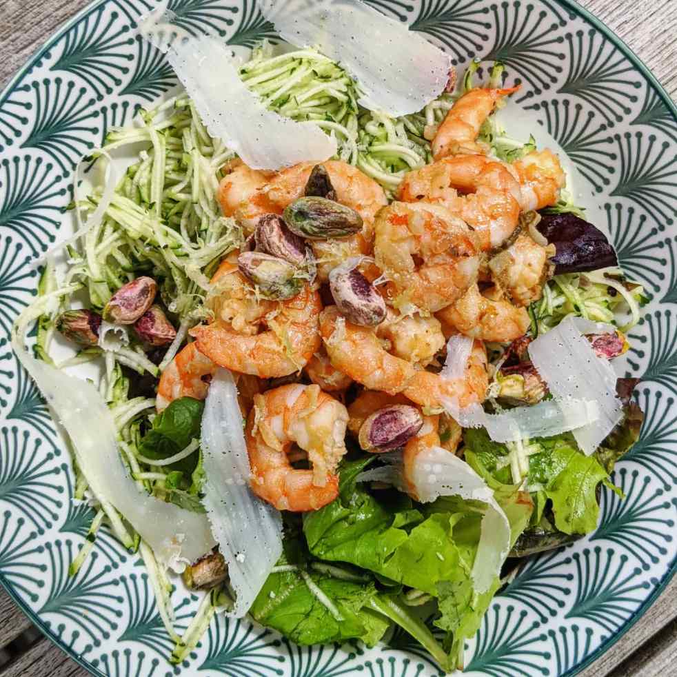 Salade de tagliatelles de courgettes, crevettes et parmesan