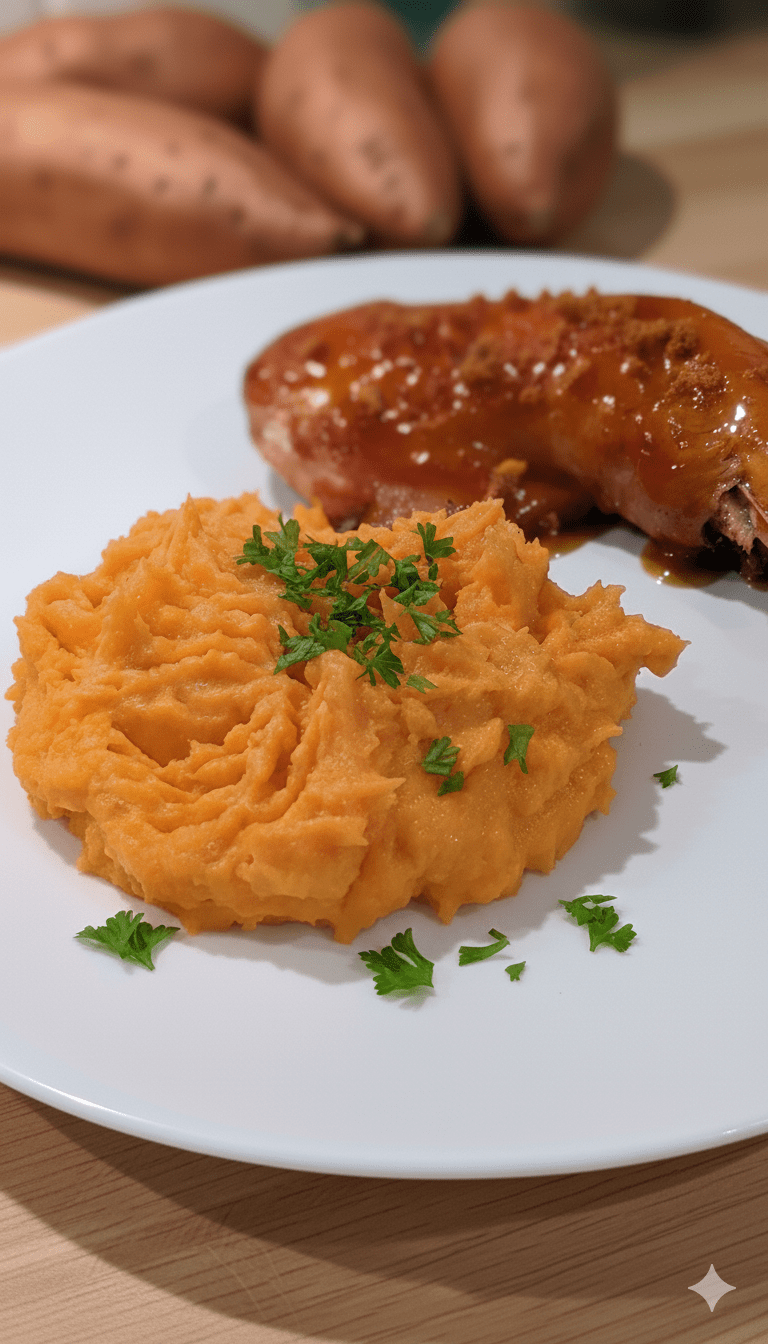 Ingrédients pour 4 personnes : 4 cuisses de poulet - 800 g de patates douces - le jus de 2 oranges + 1/2 orange pour la cuisson de la viande - Les zestes de 1/2 orange - 10 cl de crème fraiche - 2 cl de vinaigre de cidre - 10 g de sucre -… Lire la suite Cuisses de poulet, sauce à l’orange et Speculoos